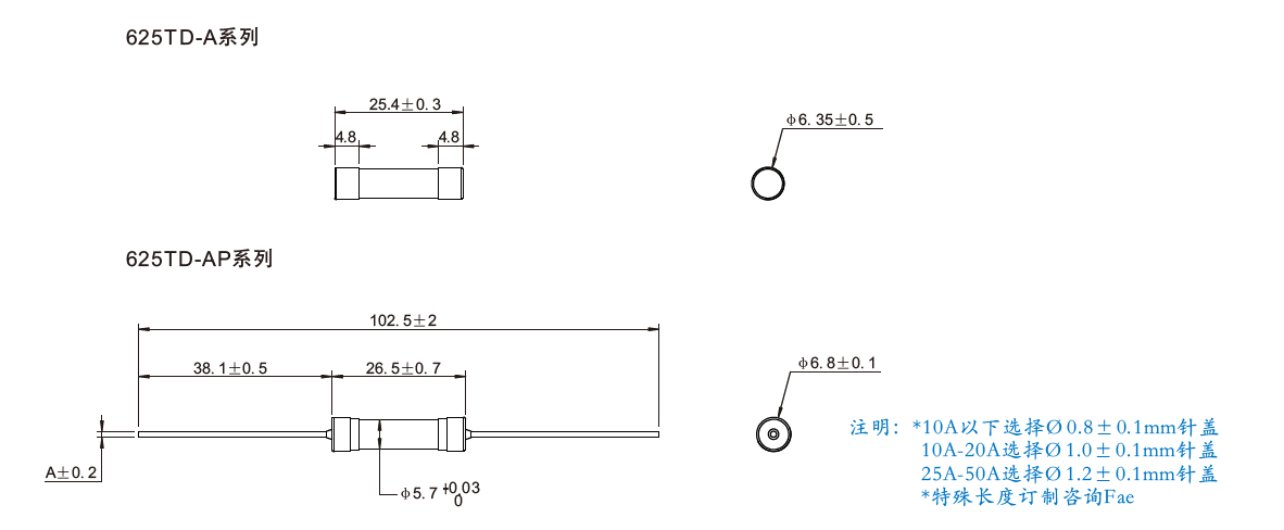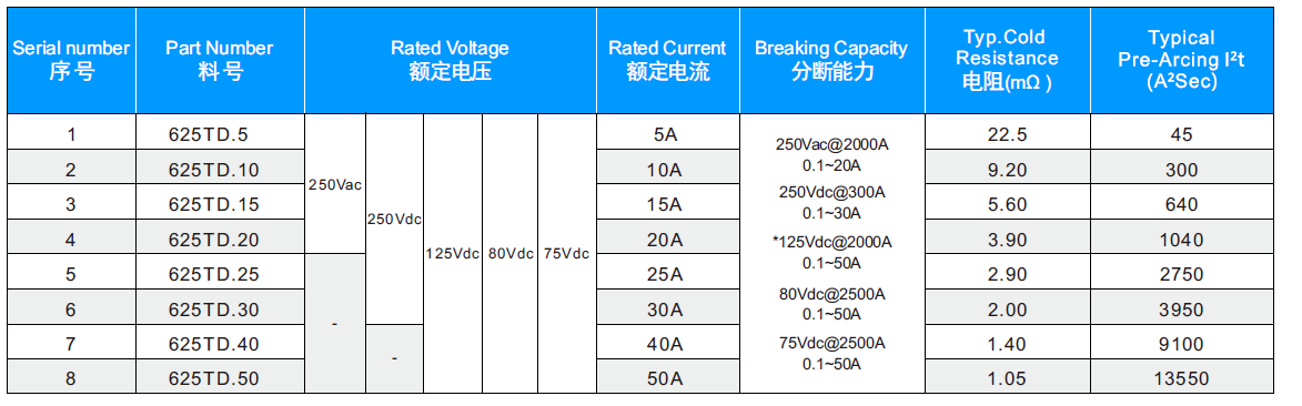 當前位置: 資訊?>?公司新聞NEWS > 防雷擊 抗浪涌 陶瓷管 大電流熔絲 625TD Series 5A~50A 250Vac/75Vdc < 返回列表